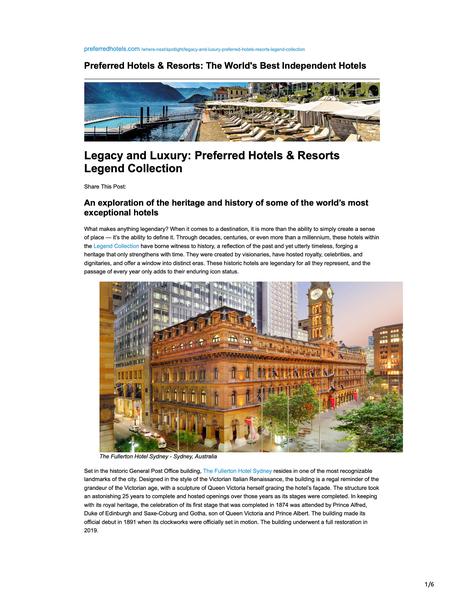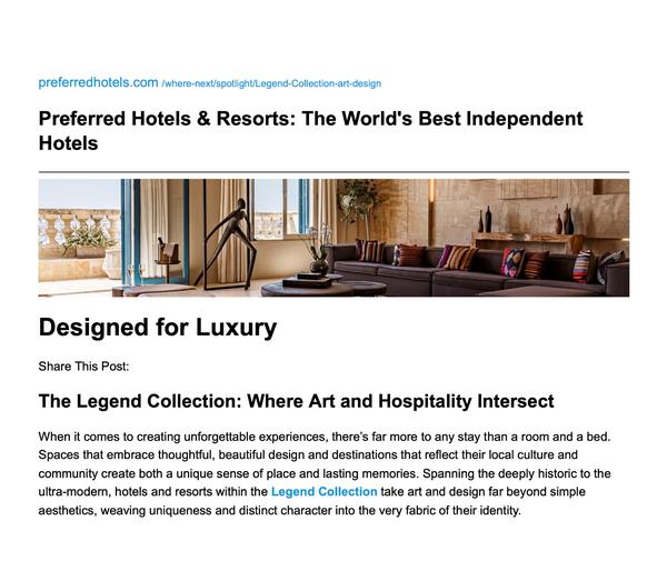 Preferred Hotels & Resorts: Where Next? • July 2024 Legacy and Luxury: Preferred Hotels & Resorts Legend Collection | Preferred Hotels & Resorts What makes anything legendary? When it comes to a destination, it is more than the ability to simply create a sense of place — it’s the ability to define it...