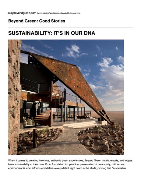 Beyond Green: Good Stories • February 2024 Sustainability: It's in Our DNA | Beyond Green Since its debut in 1992 — long before sustainability was a priority for most travelers — Post Ranch Inn in Big Sur, California, has held steadfast to its guiding principle that “what is good for the planet can also be good for the guest experience.”