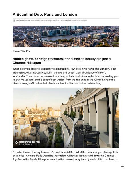 Preferred Hotels & Resorts: Where Next? • March 2024 A Beautiful Duo: Paris and London | Preferred Hotels & Resorts When it comes to iconic global travel destinations, few cities rival Paris and London...Even for the most savvy traveler, it’s hard to resi...